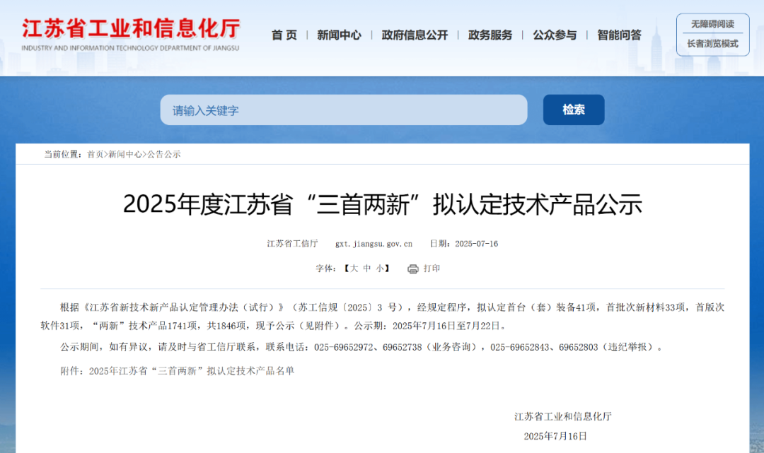江苏省工业和信息化厅公示了