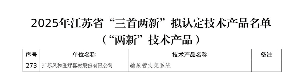 输尿管支架系统!入选省级名单!